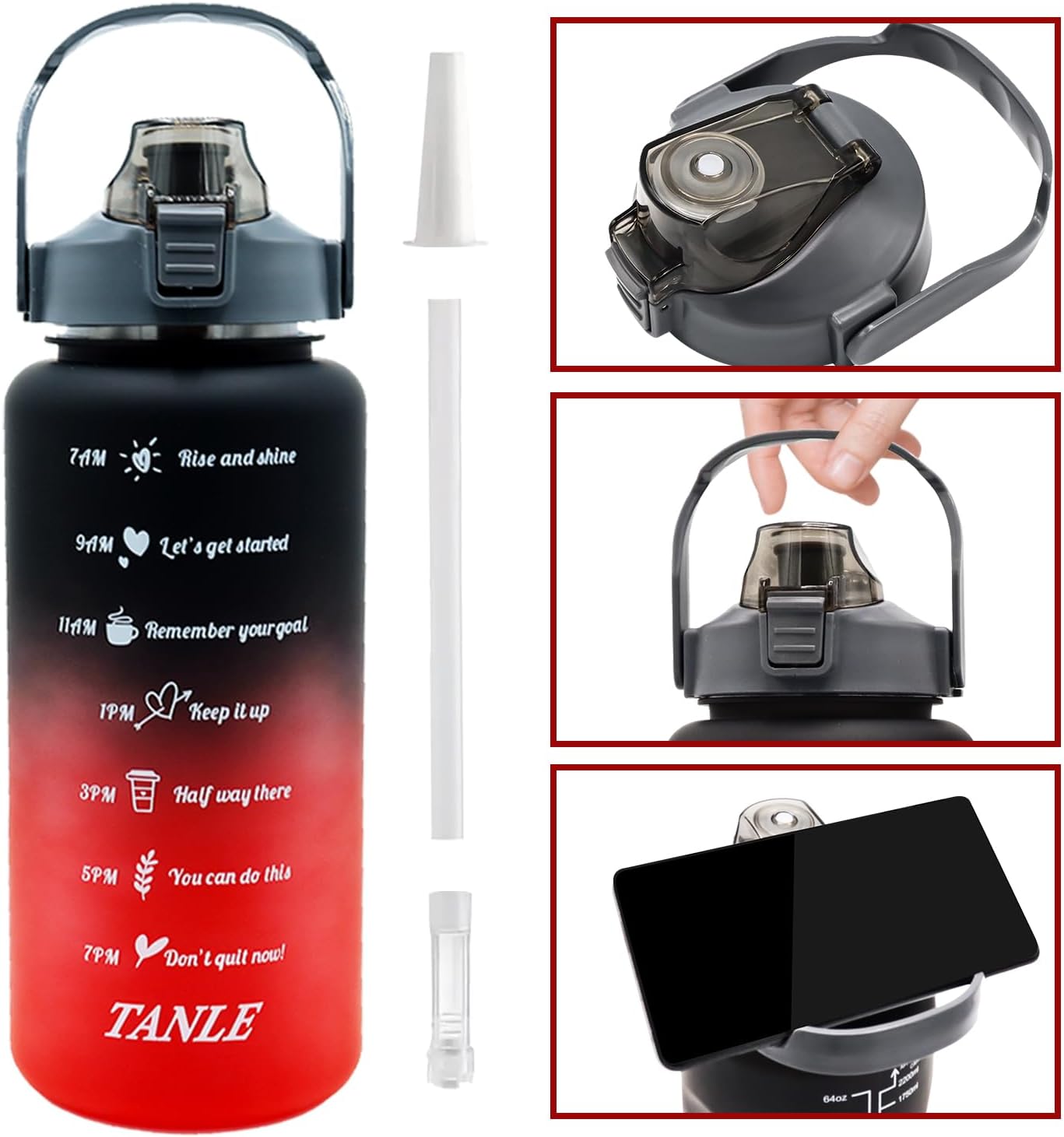 8 reviews for 4pcs Water Bottle Set,64oz+28oz+14oz+9oz Large Capacity Sports Fitness Water Bottle,Leak Proof,Straw Inspirational Water Bottle,For Family Camping Outdoor(4pcs Black red)