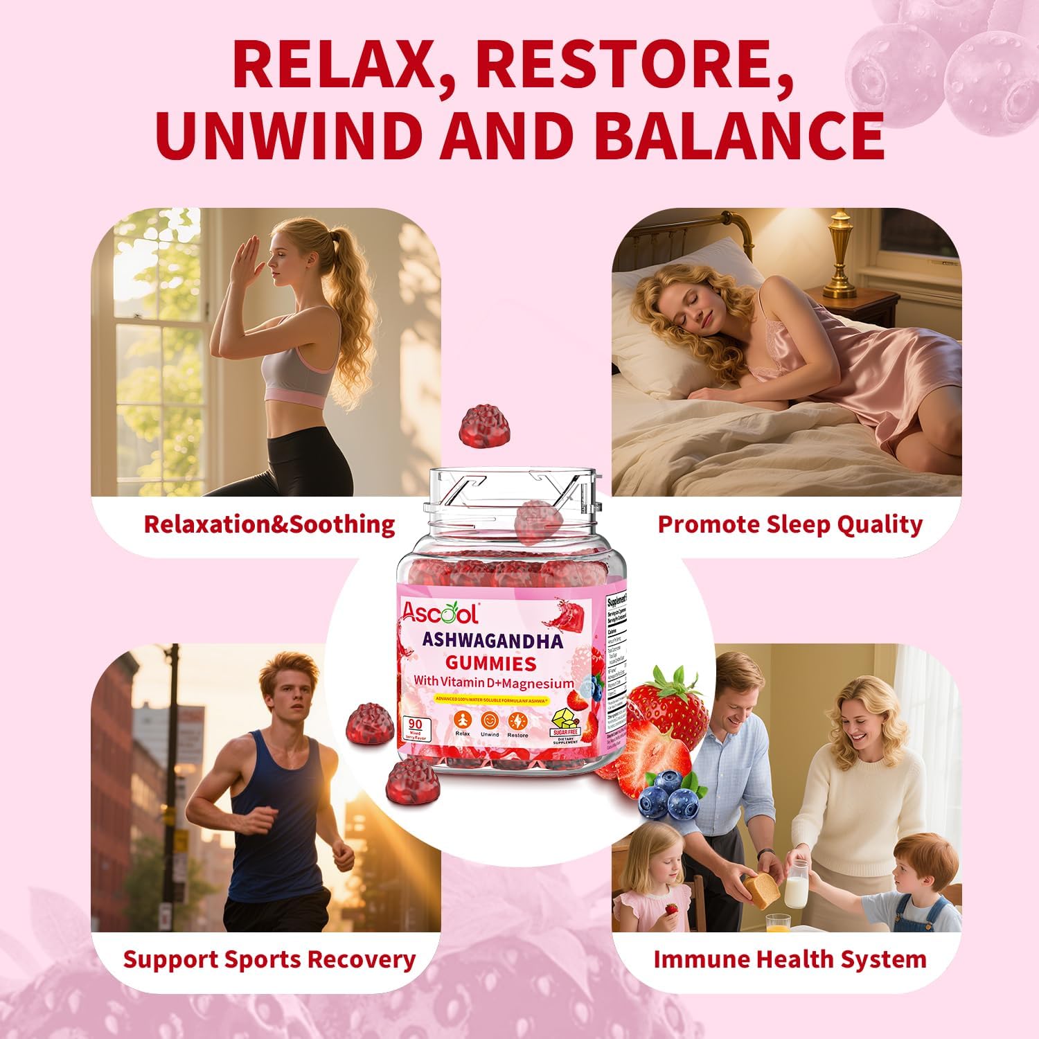 More Value, More Benefits:Our 90-count ashwagandha gummies supplements provide more servings and better value. Support stress relief, better sleep, sports recovery, immunity, and energy levels.