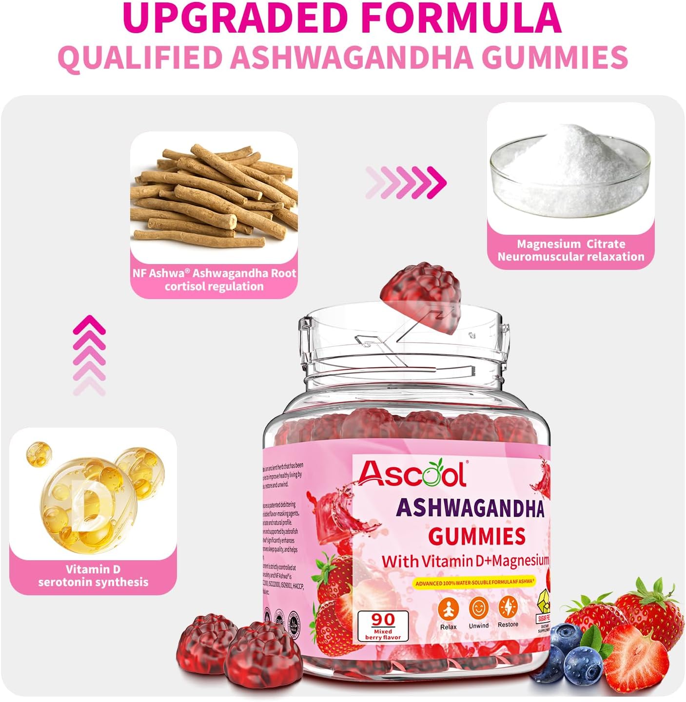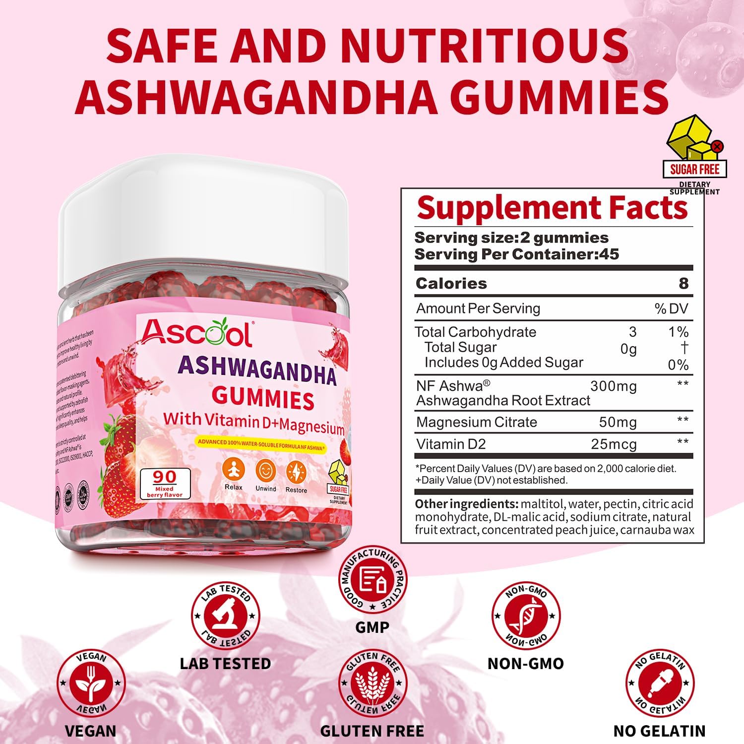 Breakthrough Absorption:Ascool NF Ashwa ashwagandha gummies deliver 40% higher bioavailability than regular ashwagandha supplements. Clinically tested to reduce stress in 2–4 weeks with zero odor or bitterness.
