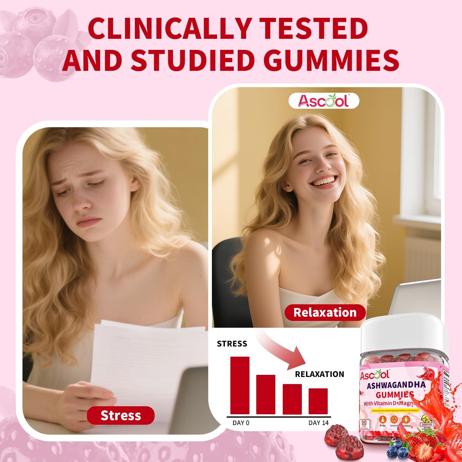 Breakthrough Absorption:Ascool NF Ashwa ashwagandha gummies deliver 40% higher bioavailability than regular ashwagandha supplements. Clinically tested to reduce stress in 2–4 weeks with zero odor or bitterness.