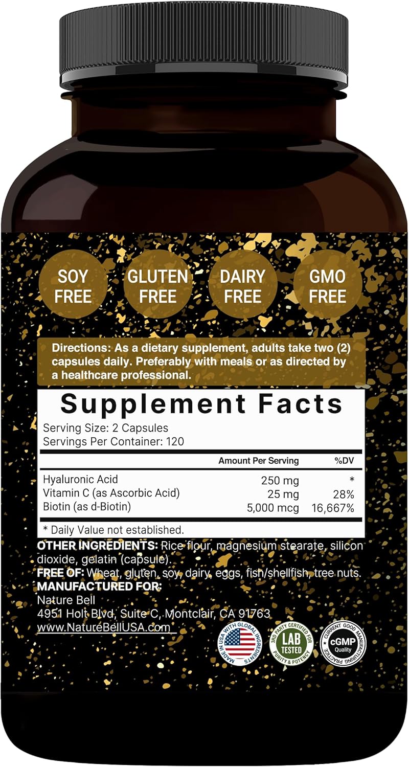 13 reviews for NatureBell 2 Pack Plant Based Hyaluronic Acid Supplements 250mg with 25mg Vitamin C & Biotin 5000mcg, 480 Total Capsules | Essential for Hair Growth, Joint Support, & Hydrating Skin | Non-GMO
