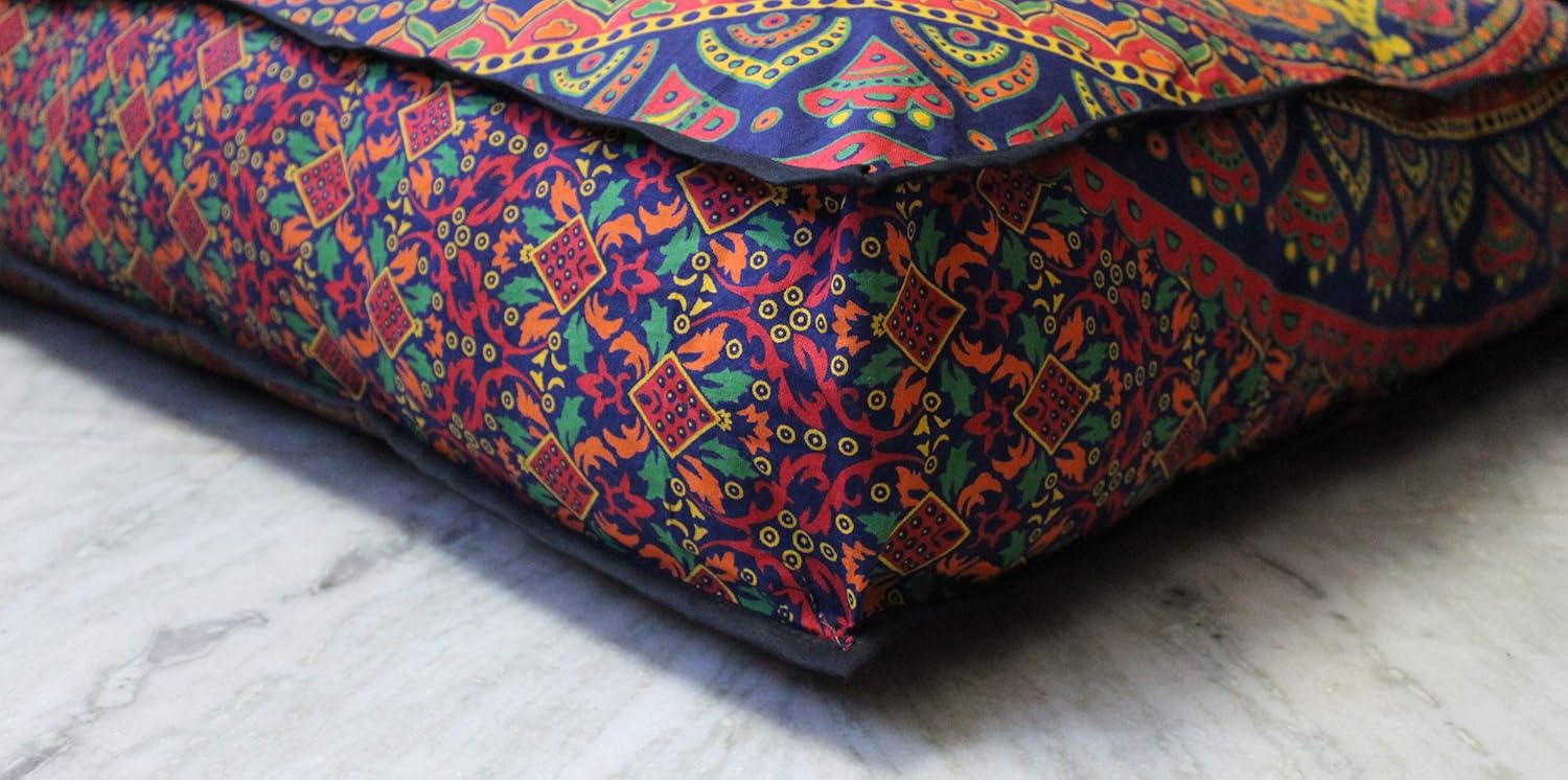 This Beautiful Mandala Tapestry Floor Pillow cover is made by Best Quality Cotton Fabric and is super soft to the touch.. You can place them in bed room, Living room or even use them for decoration in your house. You can sit on it, relax your feet upon it or use it as a decorative piece by adding a blast of color to your living space.