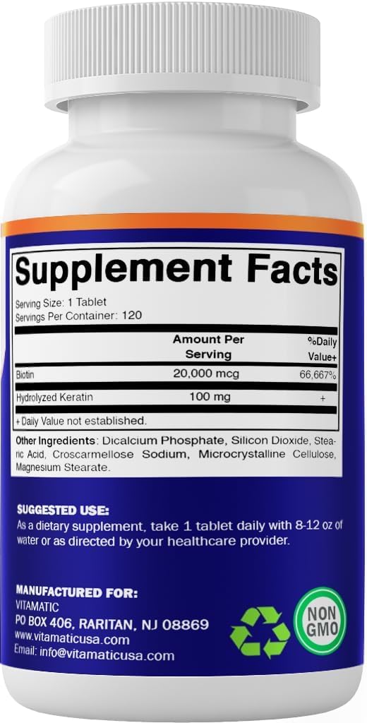 12 reviews for Vitamatic High Potency Biotin 20000 mcg (20mg) with Keratin 100mg – 120 Vegetarian Tablets – Biotin Supplements for Healthy Hair Skin & Nails for Adults (120 Count (Pack of 1))